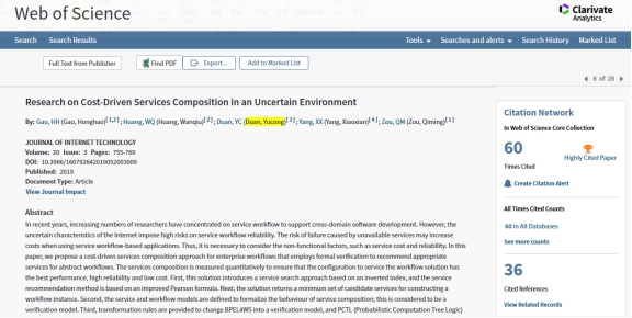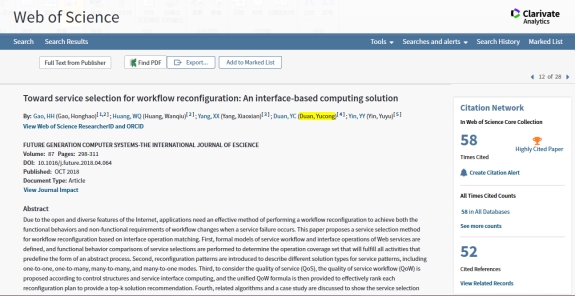 根据ESI数据库检索结果显示,以海南大学计算机与网络空间安全学院段玉聪教授作为主要作者发表的学术论文“Toward service selection for workflow reconfiguration: An interface-based computing solution”和“Research on Cost-Driven Services Composition in an Uncertain Environment”也入选ESI高被引论文。