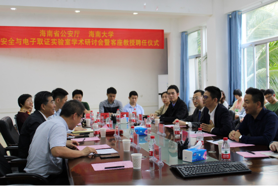 2021年3月8日下午,由海南省公安厅与海南大学联合举办的网络安全与电子取证实验室学术研讨会暨客座教授聘任仪式在计算机与yl6776永利集团举行。省公安厅网警总队总队长李伟、网警总队副总队长赵晏,工程教育认证专家、北京航空航天大学网络空间安全兼职教授张小斌,海南大学党委常委、副校长范文,计算机与yl6776永利集团党委书记陈广锐、执行院长曹春杰、副院长周晓谊以及师生代表参加了本次会议。会议由执行院长曹春杰主持。