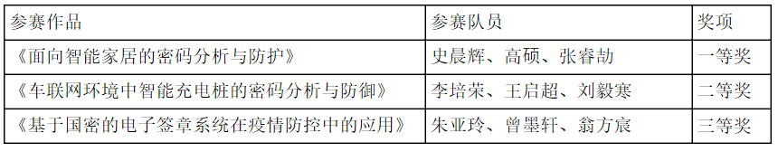 第六届全国密码技术竞赛分为初赛、复赛和决赛三个阶段,整个比赛全程历时三个月,共有复旦大学、北京航空航天大学、北京邮电大学、中国科学院信息工程研究所等全国高校和研究院所的333个团队、1332名师生参赛。其中海南大学共有8队伍参加,最终获得一等奖、二等奖、三等奖各一项的优秀战绩,实现我校在该赛事的历史性突破!