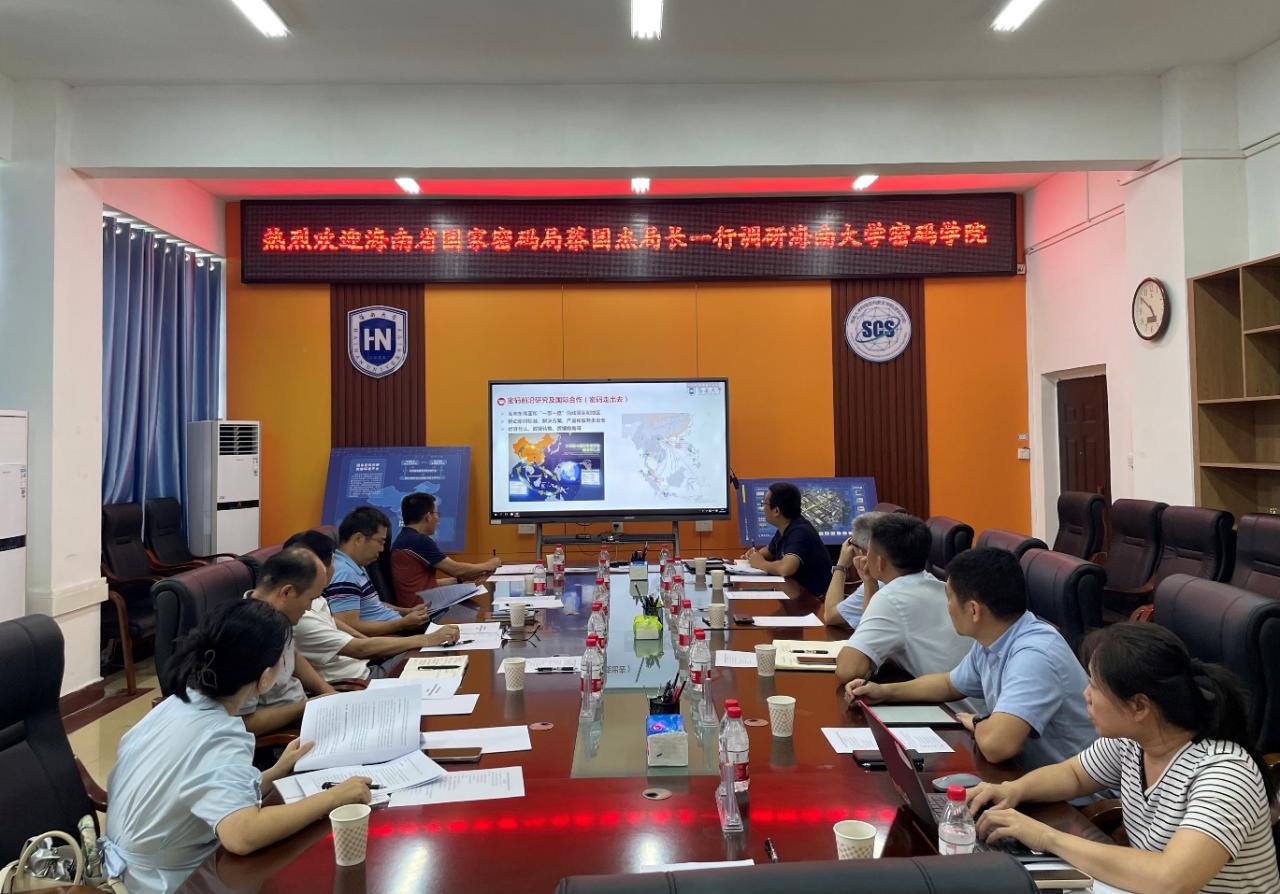 2023年5月23日,海南省国家密码管理局局长蔡国杰、副局长李朝晖,海南省国家密码管理局商用密码管理处副处长杨兴华、副处长郭祯莅临我院指导。