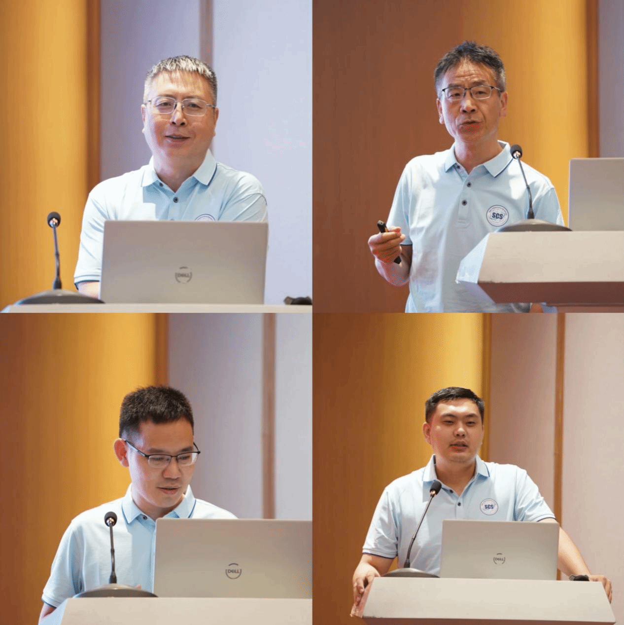 张树东(左上)、张玉清(右上)、王立波(左下)、孔泽鸣(右下)发言