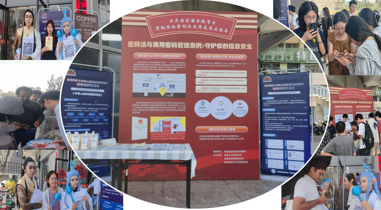 2025年4月15日,正值第十个全民国家安全教育日与《中华人民共和国密码法》正式实施五周年之际,海南大学海甸校区内掀起了一场别开生面的密码安全科普热潮。在海南省国家密码管理局指导下,海南大学密码学院联合海南省商用密码协会、海南省密码科普教育基地等多家单位,以“密码法与商用密码管理条例:守护你的信息安全”为主题,举办全民国家安全教育日普法宣传活动,吸引千余名师生热情参与。